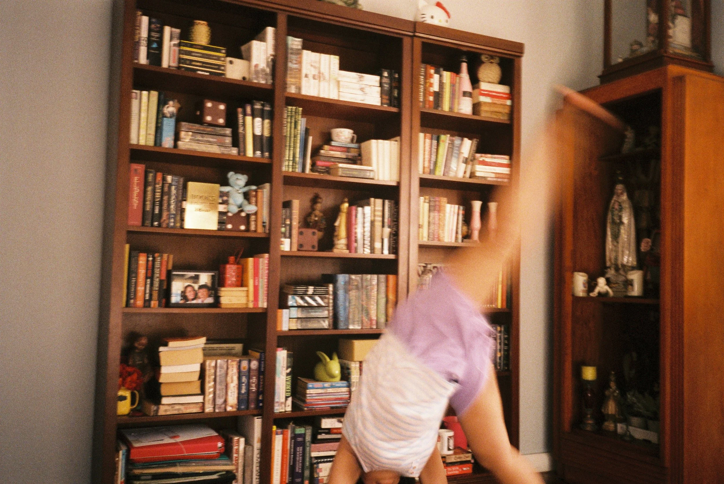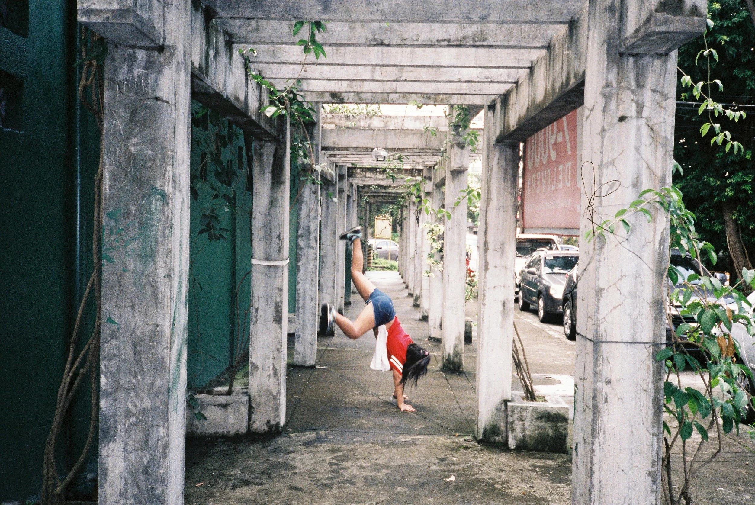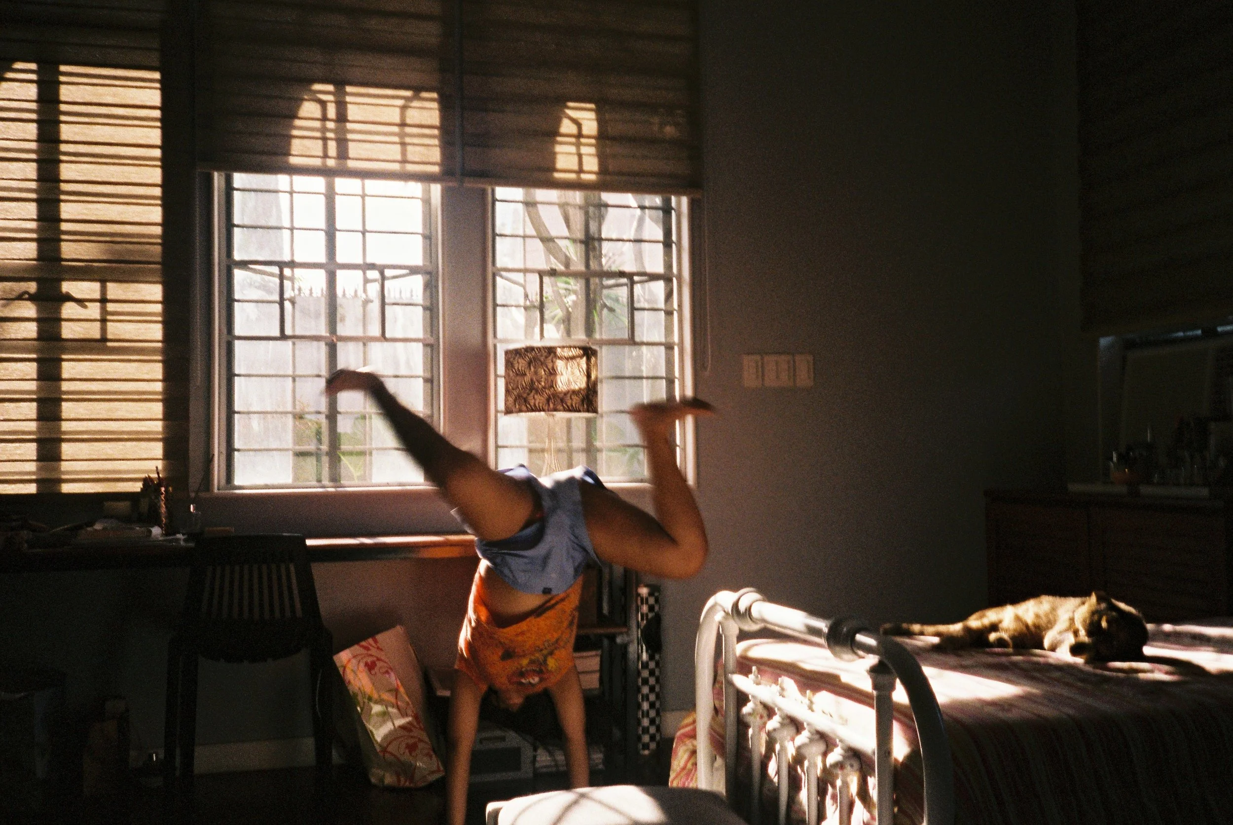 With my point-and-shoot film camera, we explored the different establishments within the city, our neighborhood, and even our own home. I shared my insecurities with my body and she showed me what it’s capable of doing. Eventually I relearned how to cartwheel myself.